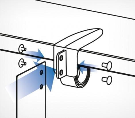 Держатель вертикальной вывески. Вертикальный вылет размером 15 х 28 мм имеет 2 отверстия диаметром 5 мм для крепления вывесок на пластиковые заклепки