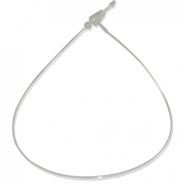 ХОМУТ ДЛЯ ПОДВЕШИВАНИЯ ЦЕННИКОВ, ЭТИКЕТОК, ПОЛИЭТИЛЕНОВЫХ КАРМАНОВ ПВХ. РАСПРОСТРАНЕННОЕ КРЕПЛЕНИЕ НА РАЗЛИЧНОЙ ПРОДУКЦИИ. ЗАЩЕЛКИВАЕТСЯ В СПЕЦИАЛЬНУЮ ПЕТЛЮ. ПРЕДНАЗНАЧЕН ДЛЯ ОДНОРАЗОВОГО ИСПОЛЬЗОВАНИЯ.