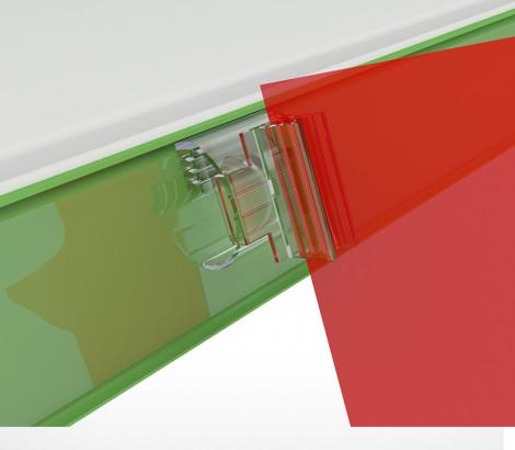 Прямой поперечный захват с изменяемым углом наклона держателя вывески, для крепления на всех типах стандартных ценникодержателей. Для вывесок толщиной от 0,5 до 3 мм.