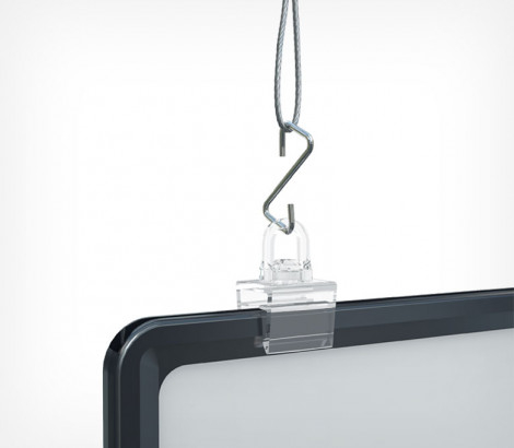 Металлический Z-образный крючок Z-HOOK предназначен для подвешивания различных рекламных и информационных носителей. Может использоваться с потолочными креплениями типа MB или MBR, CELING-CLIP, с плакатным профилем GRIPPER и подвесными системами UNITRACK, ECOTRACK, FLYTRACK и HIGHTRACK или в качестве соединителя нескольких подвесных конструкций. Оригинальная форма крючка Z-HOOK с острыми внутренними углами обеспечивает гарантированное подвешивание любой конструкции под углом 90 относительно пола, а также защищает от соскакивания носителя при случайном задевании во время эксплуатации. Толщина крючка — 2 мм.