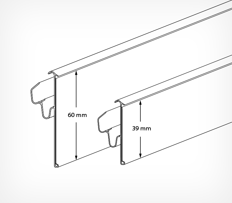 LST — это двухпозиционный стеллажный ценникодержатель, конструкция которого предусматривает возможность установки двух положений наклона ценника по отношению к торцу полки.