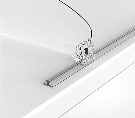 Т-профиль T-RAIL10 ш. 10 мм без ограничителя крепление скотч  —  Т-профиль предназначен для монтажа на стеклянную, деревянную или металлическую полку замковых разделителей, толкателей или профиля для задней опоры. Рекомендуется использовать для крепления разделителей.