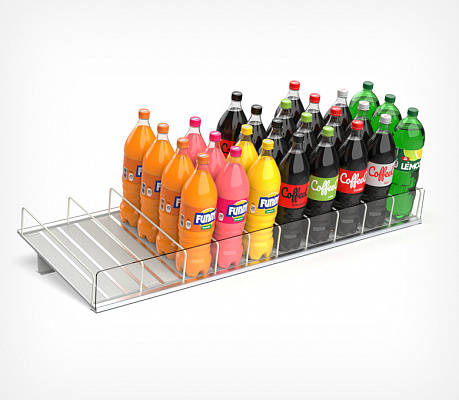 Основная часть полки - роллерное полотно, по которому продукты перемещаются к краю полки. Легко устанавливается на полку стеллажа и проста в обслуживании.
