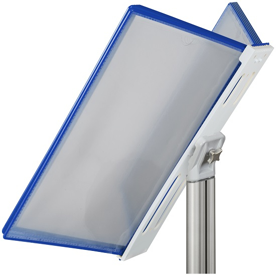 Комплект: напольное основание высотой 1.4 м. угол наклона держателя рам 55° + 10 РАМ «Стандарт» формата А- 4 с встроенным защитным протектором ,