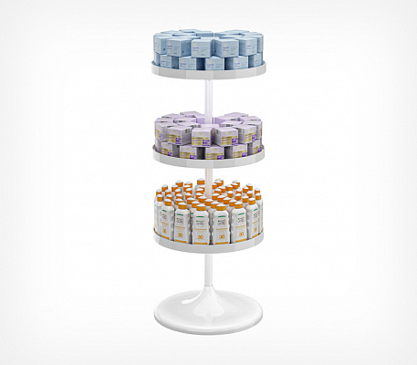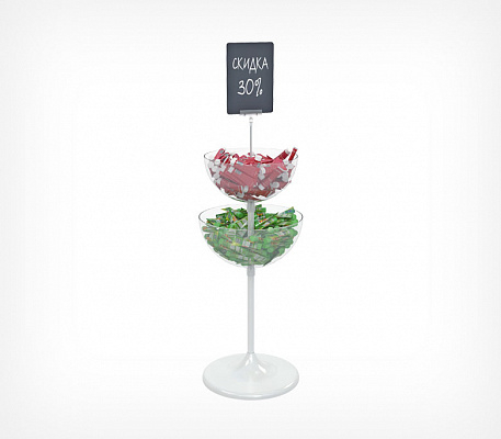 Двухуровневый дисплей UNIBOWL-TOWER состоит сразу из двух чаш разных объемов. Благодаря этому дисплей позволяет делать выкладку сразу двух товаров и ещё более эффективно использовать торговую площадь, увеличивая продажи.