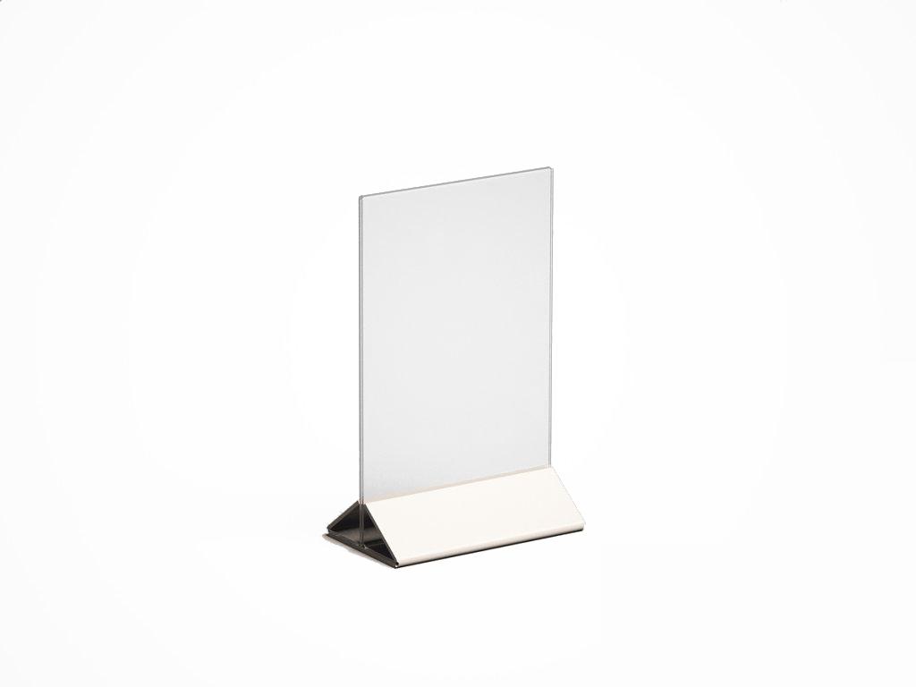 МЕНЮХОЛДЕР ФОРМАТА А-5, С НИЖНЕЙ ЧАСТЬЮ РАЗЛИЧНЫХ ЦВЕТОВ, КЛАСИЧЕСКОГО ВИДА. СОСТОИТ ИЗ ДВУХ ЧАСТЕЙ, ПРОЗРАЧНОГО ПЛАНШЕТА И НИЖНЕГО ДЕРЖАТЕЛЯ, ТРЕУГОЛЬНОЙ ФОРМЫ. ПОДХОДЯЩИЕ ИЗДЕЛИЕ, ПРИ НЕОБХОДИМОСТИ ПО ОСОБЕННОМУ ВЫДЕЛИТЬ ИНФОРМАЦИЮ. ПЛАНШЕТ ВСТАВЛЯЕТСЯ В ДЕРЖАТЕЛЬ С ВЕРХУ.