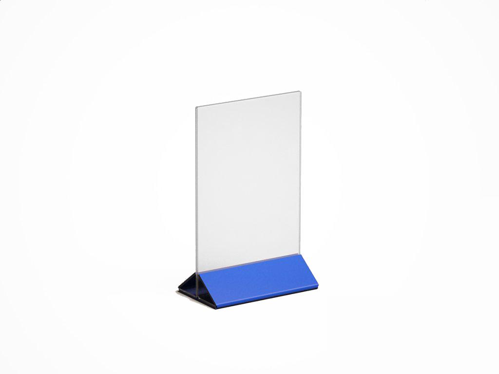МЕНЮХОЛДЕР ФОРМАТА А-6, С НИЖНЕЙ ЧАСТЬЮ РАЗЛИЧНЫХ ЦВЕТОВ, КЛАСИЧЕСКОГО ВИДА. СОСТОИТ ИЗ ДВУХ ЧАСТЕЙ, ПРОЗРАЧНОГО Т-ОБРАЗНОГО ПЛАНШЕТА И НИЖНЕГО ДЕРЖАТЕЛЯ, ТРЕУГОЛЬНОЙ ФОРМЫ. ВОЗМОЖНО НАНЕСЕНИЕ ЛОГОТИПА.