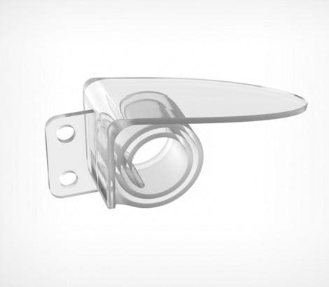 Держатель вертикальной вывески. Вертикальный вылет размером 15 х 28 мм имеет 2 отверстия диаметром 5 мм для крепления вывесок на пластиковые заклепки