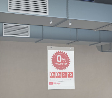 Петля используется для подвешивания плакатов, ценников, объявлений на металлическом оборудовании, металлических коммуникационных конструкциях под потолком, трубах и других металлических поверхностях в любой плоскости.