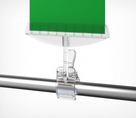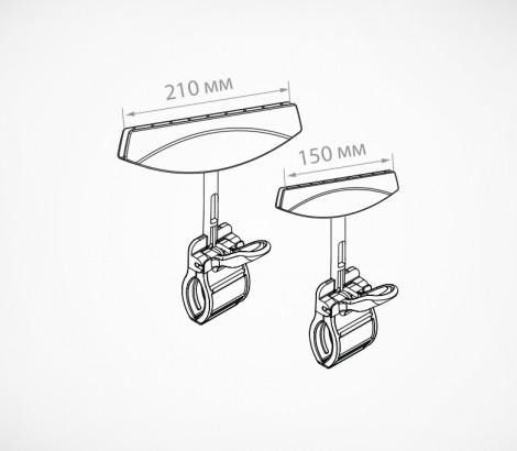 Держатель акрилового кармана или плаката из картона, с зажимом-прищепкой для крепления на трубе ( макс Ø 40 мм), товаре, краю полки (макс.толщина 35 мм). Ширина 150 или 210 мм. Толщина вставки – 3 мм.