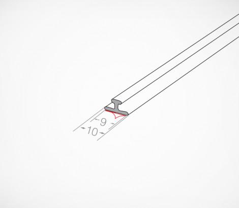 Т-профиль T-RAIL10 ш. 10 мм без ограничителя крепление скотч  —  Т-профиль предназначен для монтажа на стеклянную, деревянную или металлическую полку замковых разделителей, толкателей или профиля для задней опоры. Рекомендуется использовать для крепления разделителей.