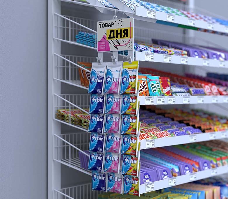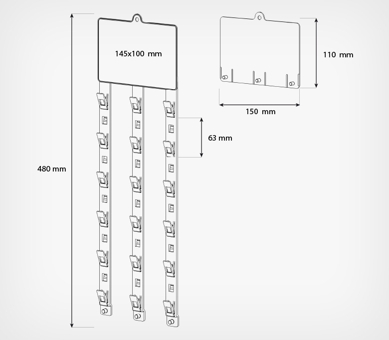 Топпер для подвесной пластиковой страйп-ленты. Предназначен для крепления пластиковых страйп-лент и размещения ценников или рекламных наклеек. Используется вместе со страйп-лентами для товаров в небольшой упаковке без отверстия для подвеса. Позволяет размещать до трех страйп-лент.